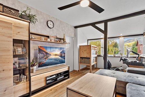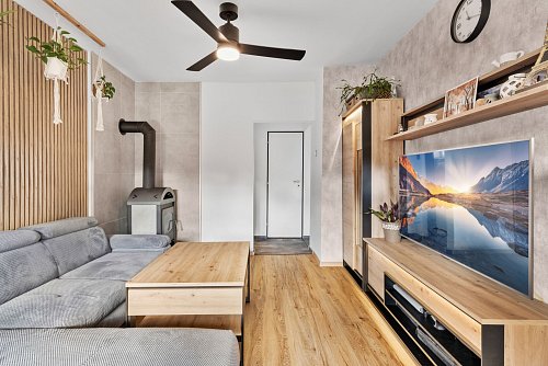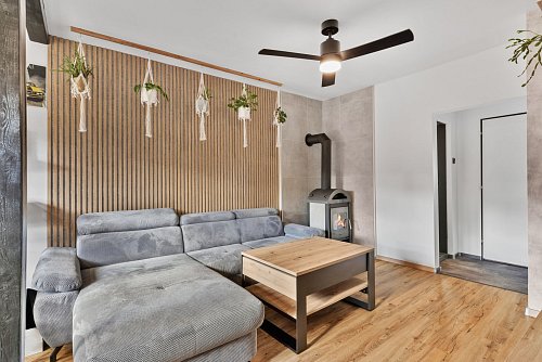 Interiér prošel rekonstrukcí, která citlivě kombinuje funkčnost s útulností. Dispozice 3+1 je navržená tak, aby nabídla dostatek prostoru pro rodinný život, přitom zůstává vzdušná a praktická. Byt je laděn v jemném severském stylu, který vás přenese do atmosféry skandinávského hygge – domova, kde se chcete zachumlat s knihou a šálkem čaje.