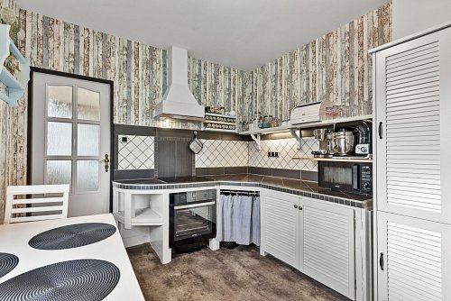 Vytápění zajišťuje elektrický přímotop, který lze pohodlně regulovat podle potřeby. Pro zimní dny nebo večerní pohodu si můžete zatopit v krbových kamnech, které dodají prostoru nejen teplo, ale i neopakovatelnou atmosféru.